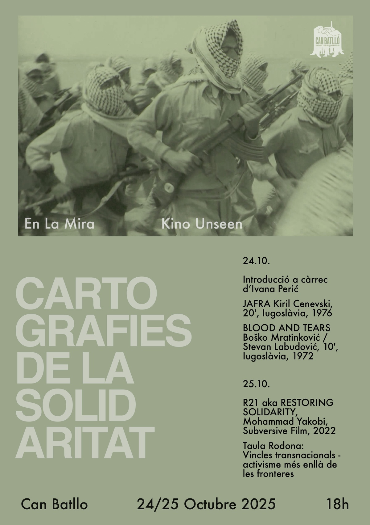 Kino Unseen i En La Mira presenten dues nits de projeccions de pel·lícules i xerrades sobreles lluites internacionals per la causa palestina, des del passat fins al present.