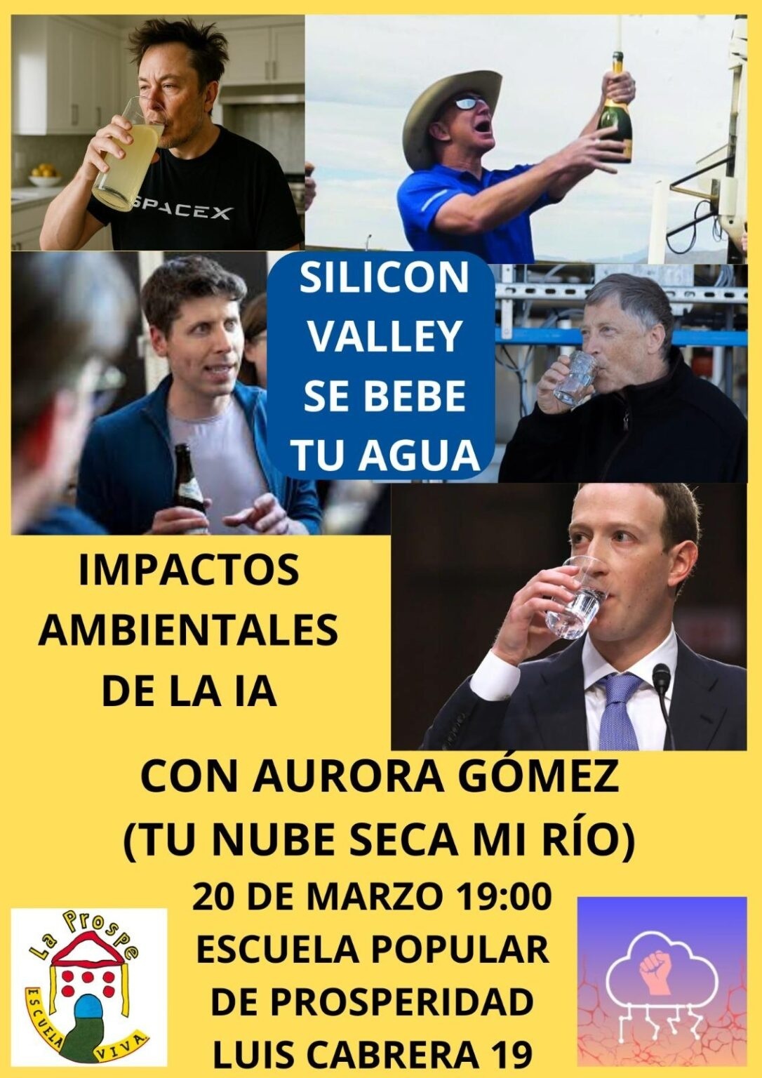 Un fantasma recorre Europa: el fantasma de la nube. Algo tan etéreo se manifiesta en moles de hormigón llenas de ordenadores que nos permiten ver Netflix, comprar en Amazon, buscar en Google o preguntar a ChatGPT. Los centros de datos son el reverso tenebroso de la economía digital, un gigante hambriento de electricidad para que no tengas que pensar y sediento de agua para mantener el scroll infinito infinitando. Los oligopolios digitales ya nos han robado la atención, y ahora pretenden hacerse con nuestros recursos. Por suerte, aún podemos luchar, y en esa lucha nos acompaña *Tu Nube Seca Mi Río* , un colectivo cuyo objetivo es visibilizar lo que se mueve detrás de las pantallas. El próximo *viernes 20* nos explicarán los impactos medioambientales que tienen los algoritmos que determinan nuestras vidas y nos mostrarán que la economía desmaterializada tiene mucho más de material de lo que pensamos.
