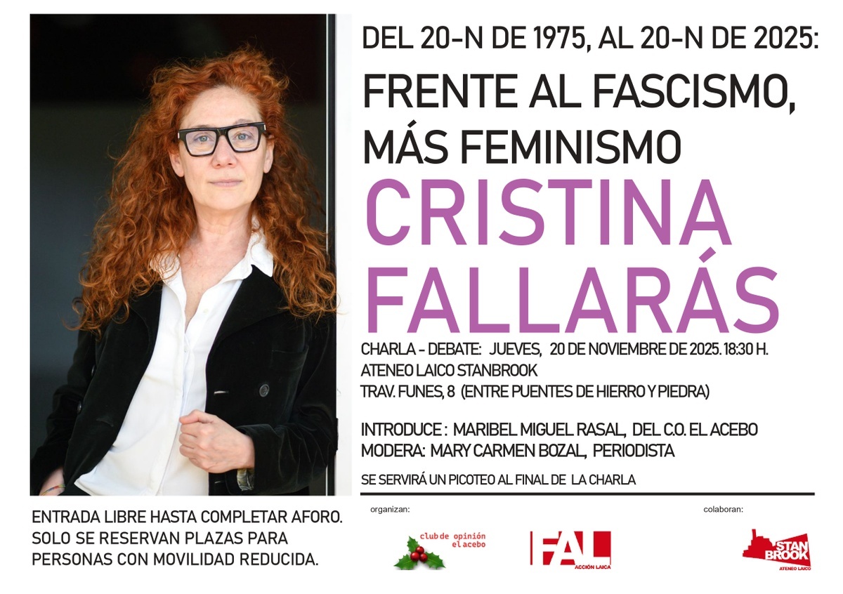 Charla–debate Cristina Fallarás: “Del 20-N de 1975 al 20-N de 2025. Frente al fascismo, más feminismo”