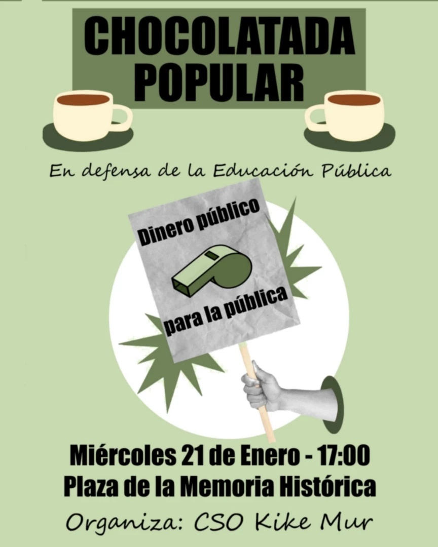 En el marco de la convocatoria de huelga por la educación pública de @cgtaragon tomaremos las calles de Torrero para mostrar nuestro apoyo y solidaridad con una chocolatada vegana para calentar el cuerpo.