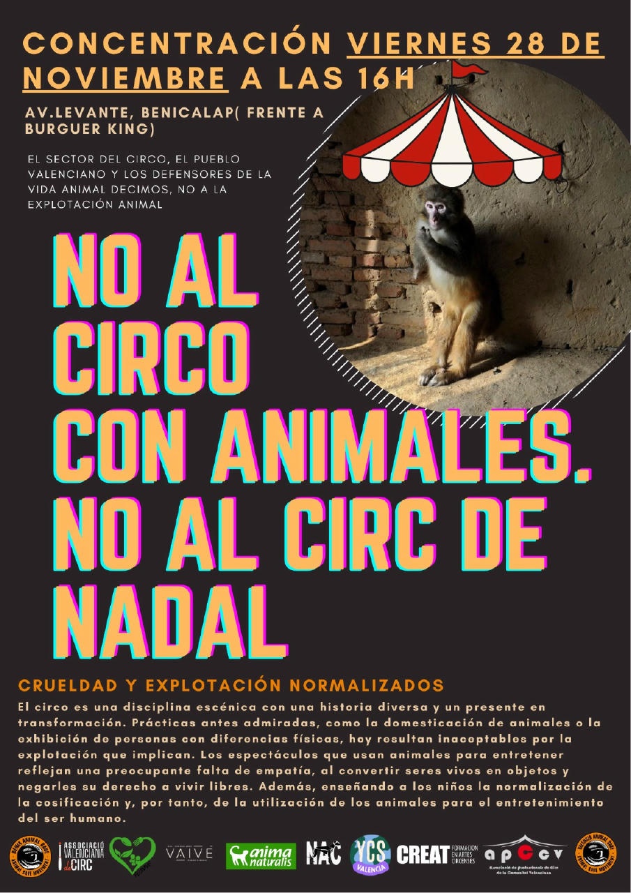 Por ello numerosas entidades antiespecistas de defensa animal y asociaciones circenses que rechazamos estos espectáculos con animales nos concentraremos a la puerta del circo en la tarde de su inauguración.