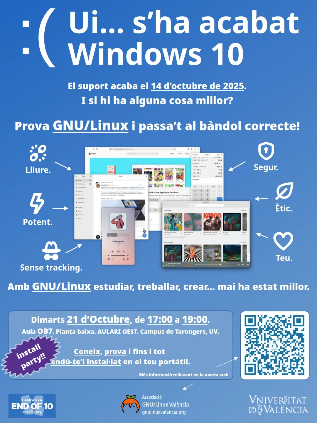 ¡Coneix, prova e instala GNU/Linux! Install Party (Campanya #EndOf10)