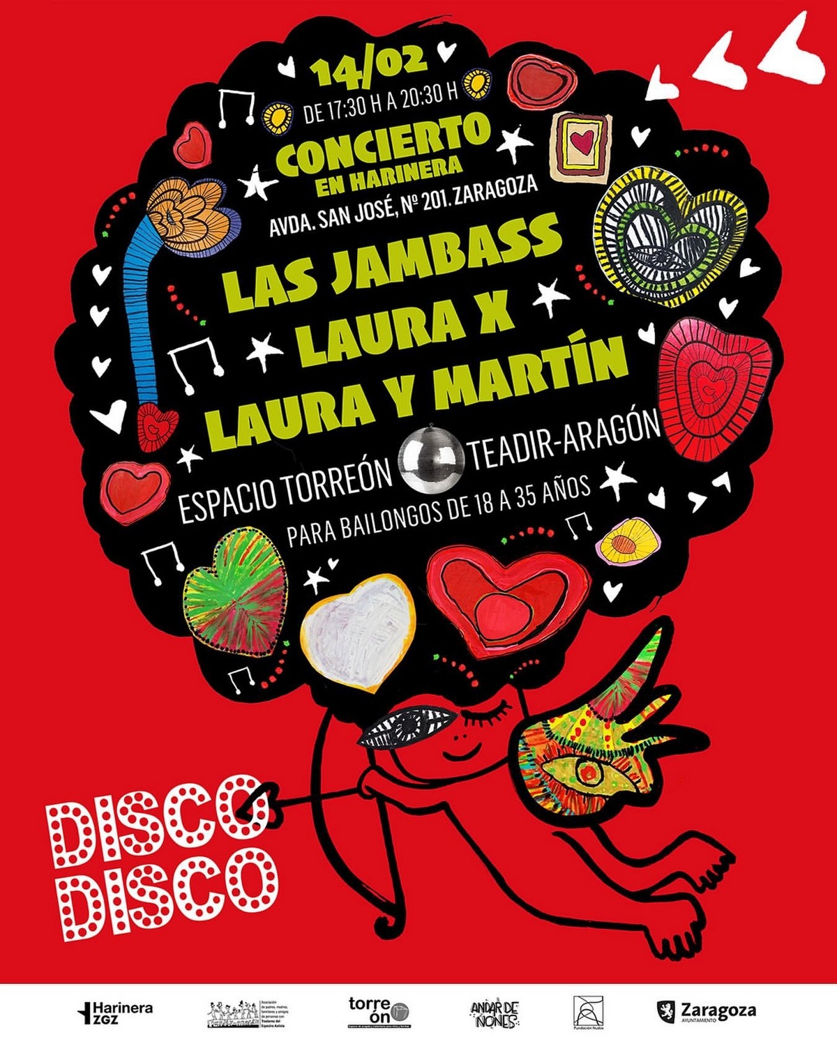 El 14 de febrero, @harinerazgz se transforma en pista de baile con las actuaciones de @jambass.zgz , @l4ur4xofficial l , y el dúo formado por Martín y Laura.