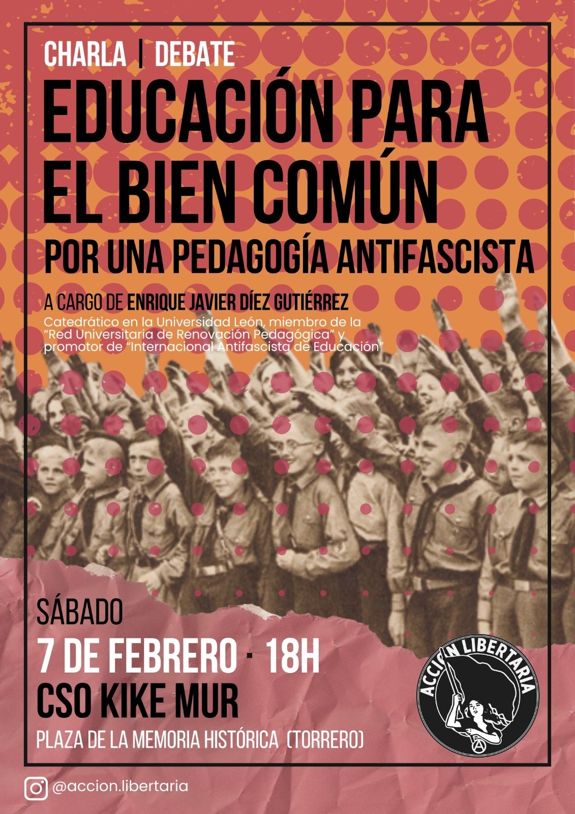 Para ello invitamos a Enrique Javier Díez Gutiérrez, un referente que lleva años demostrando que la educación es un campo de batalla primordial frente al fascismo. Catedrático de la Universidad de León, impulsor de la Internacional Antifascista de Educación y miembro de la Red Universitaria de Renovación Pedagógica, Enrique nos trae claves reales para construir una educación libre y para el bien común, blindar nuestras escuelas contra el fascismo y ponerlas al servicio de la comunidad.