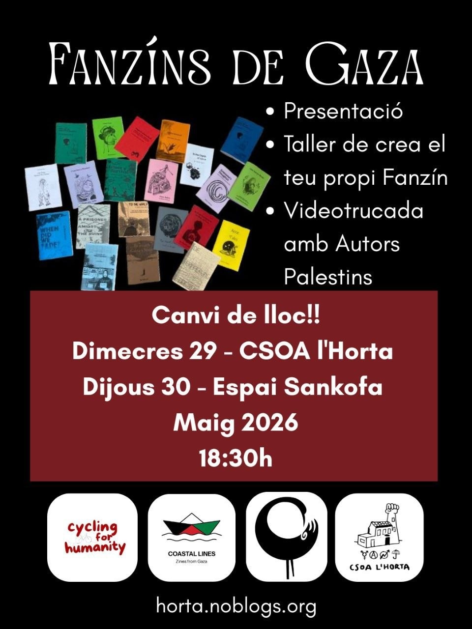 El Dimecres 29 de Maig (hui) es queda al CSOA l'Horta (al final del Carrer Diógenes López Mechó, Benimaclet, València):