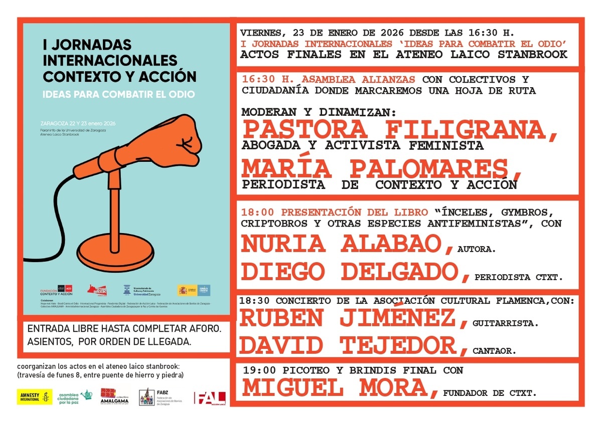 📢 En una semana estaremos en Zaragoza celebrando las I Jornadas Internacionales Contexto y Acción: “Ideas para combatir el odio”.