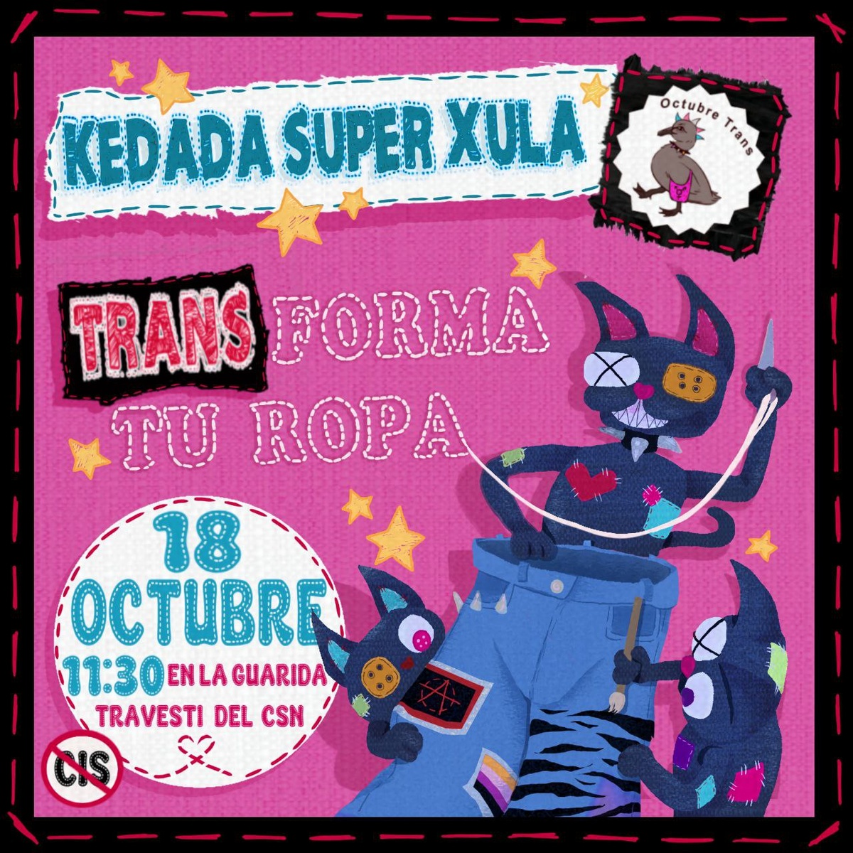 estamos muymuymuy felices de sakar xfin el kartel de la kedada super xula pa trans(🤪)formar ropita, aunke en verdad es un poko una exkusa pa almorzar, eskuxar musikita ooo simplemente pasar el rato..... todo en kompañia de nuestres travestis de konfianza 🥳🥳🥳🥳