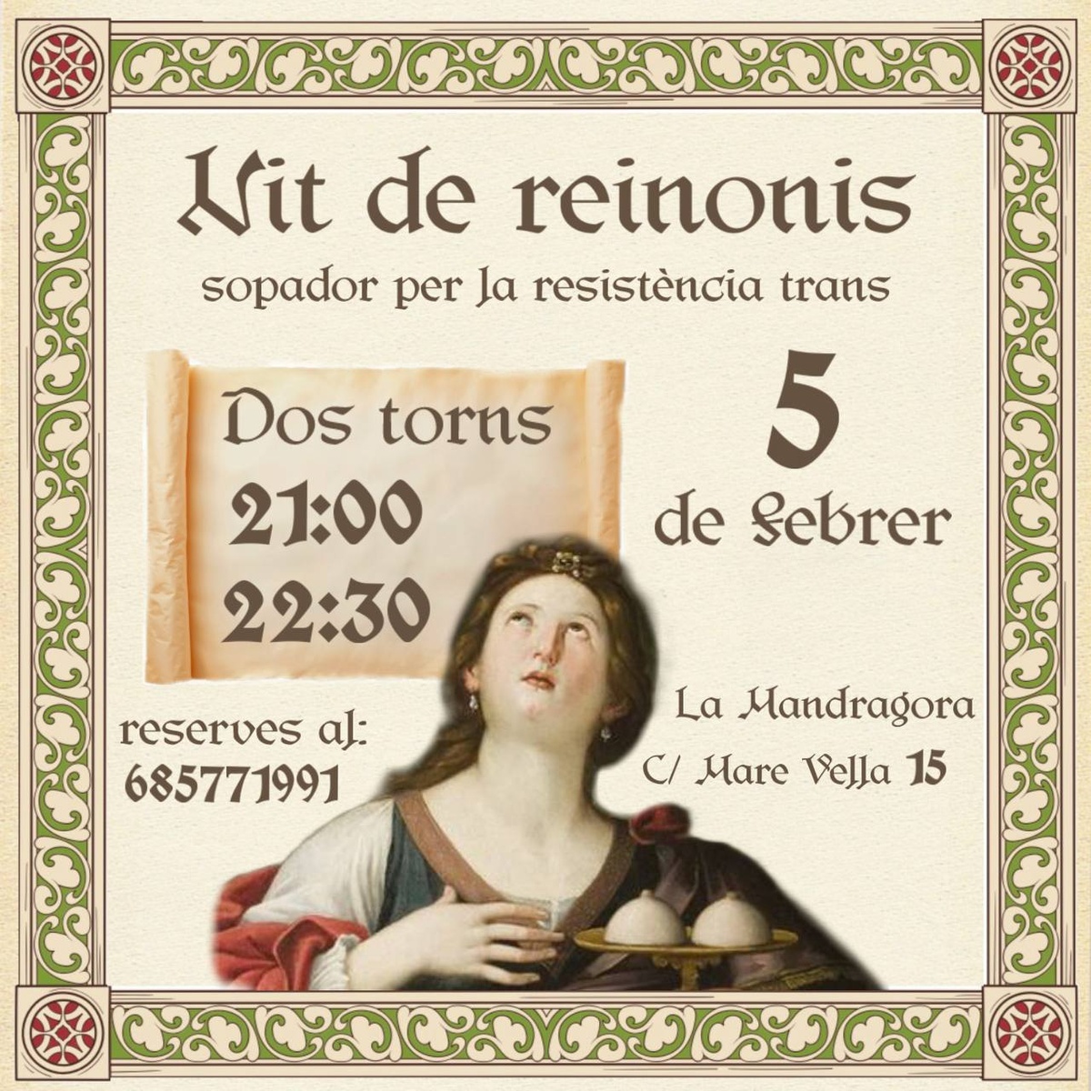 Podeu reservar enviant un colom missatger al 🕊️ 685771991