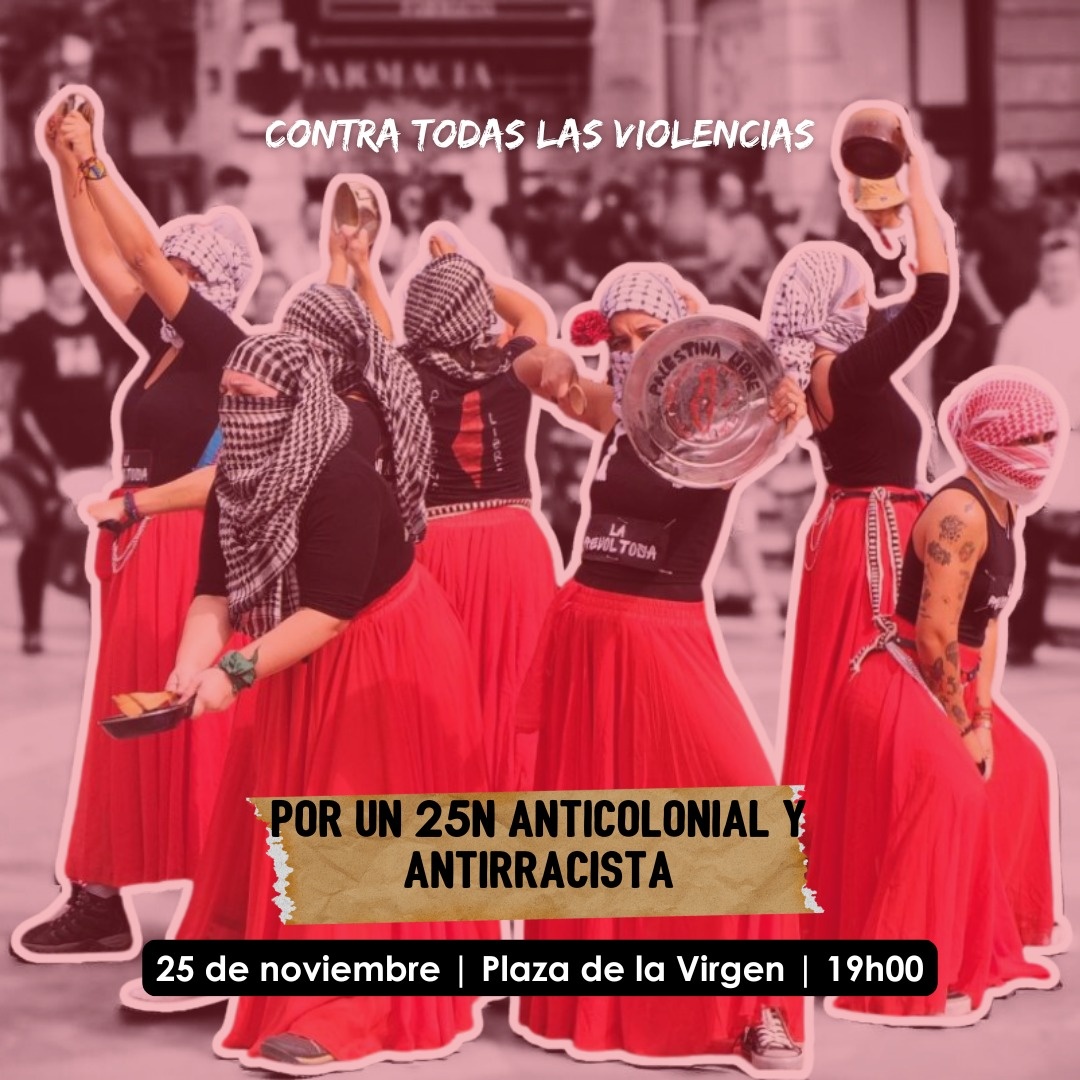 Por un 25N anticolonial y antirracista Desde La revoltosa creemos que es importante no dejar pasar esta fecha sin encontrarnos, sin visibilizar nuestras resistencias y sin alzar la voz desde nuestros feminismos contrahegemónicos, transinclusivos, pro derechos, antiislamófobos y anticoloniales. Por eso, proponemos una concentración abierta, diversa y combativa este 25 de noviembre, para denunciar todas las violencias —las que atraviesan nuestros cuerpos, nuestros territorios y nuestras vidas— y reafirmar que seguimos aquí, juntes, sosteniéndonos y transformando.
