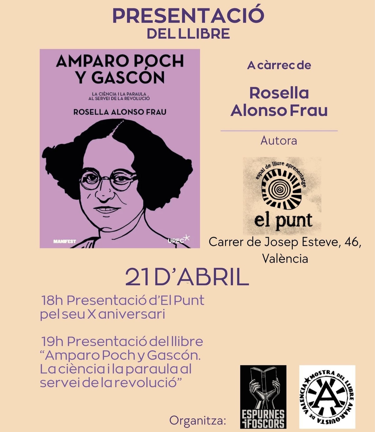 A les 19:00 presentació d"Amparo Poch y Gascón. La ciència i la paraula al servei de la revolució".