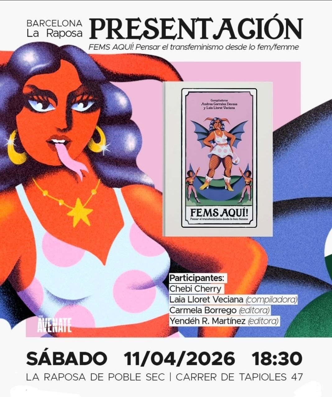 Este sábado 11 a las 18:30h os esperamos para la presentación de Fems Aquí!. Una compilación de textos para pensar el transfeminismo desde lo fem/femme