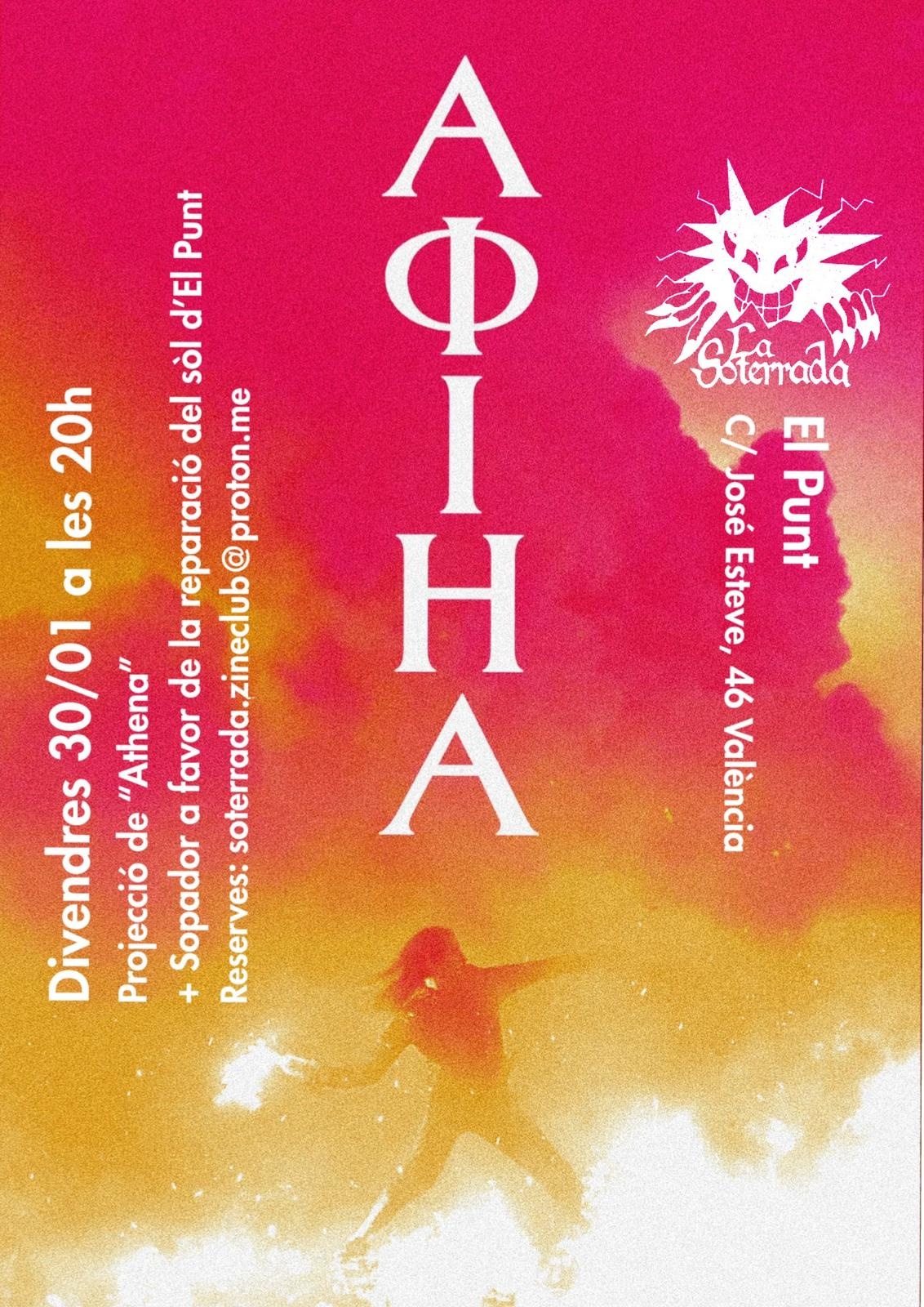 El divendres 30 a partir de les 20h estarem a El Punt 🍿❤️ Vorem Athena de Romain Gavras, sobre els disturbis a França, i després soparem junts 🔥👏 Escriu al correu: soterrada.zineclub@proton.me per fer la reserva del sopar 🍛✨
