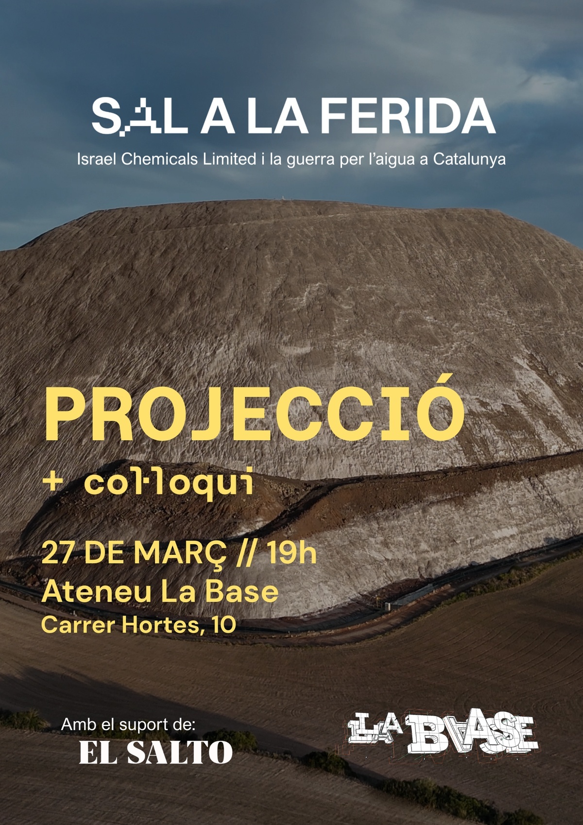 Aquest 27 de setembre, projectem a La Base el documental Sal a la Ferida, una producció autogestionada sobre l'empresa israeliana ICL, que opera les mines de potassa del Bages i és còmplice del genocidi del poble palestí.