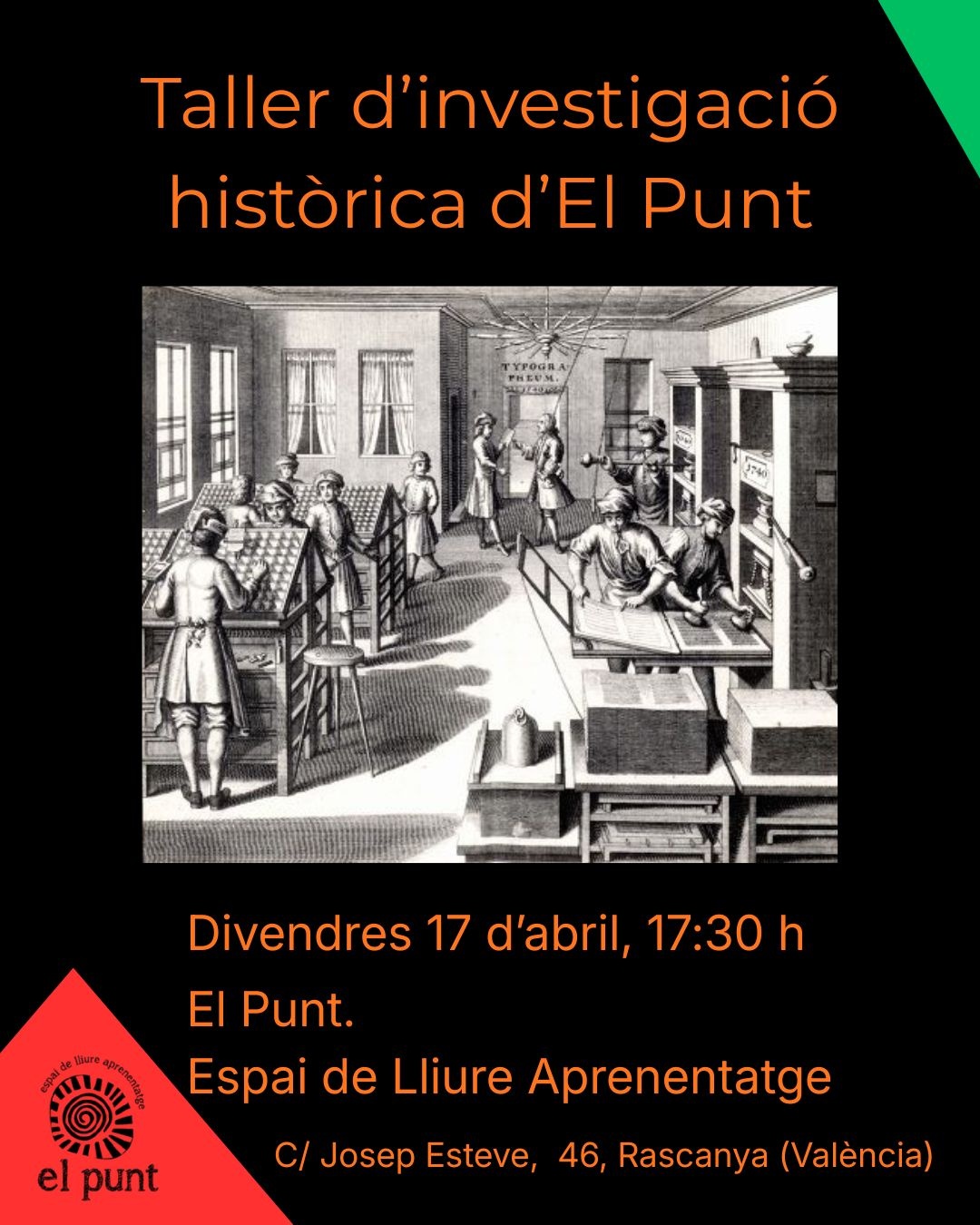 El divendres 17 d'abril tornem a trobar-nos a El Punt en el tercer encontre del taller d'investigació històrica. T'esperem!