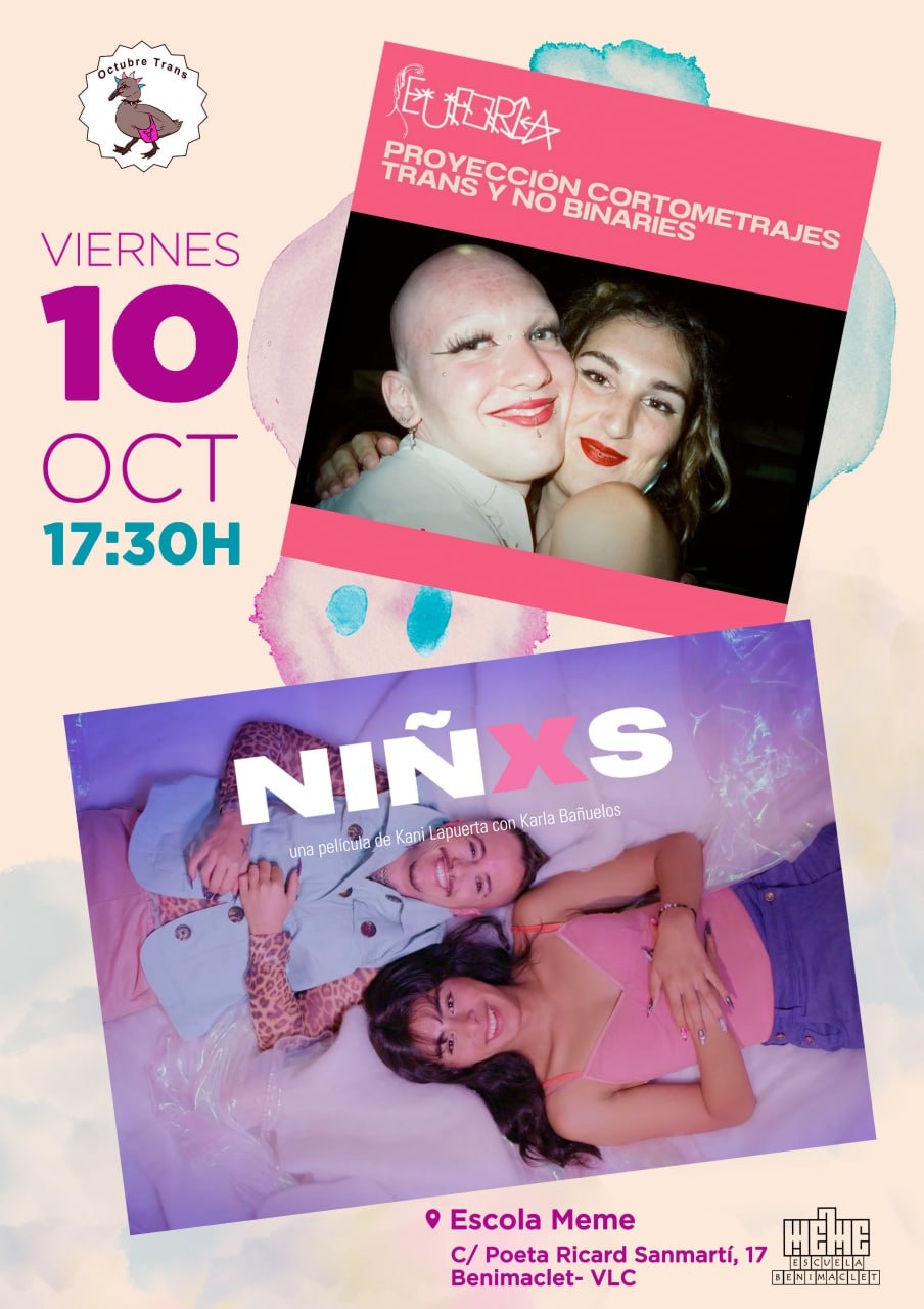 El próximo viernes 10 de octubre a las 17:30h, y enmarcada en las actividades del Octubre Trans Vlc 2025, os convocamos a una doble sesión de cine!