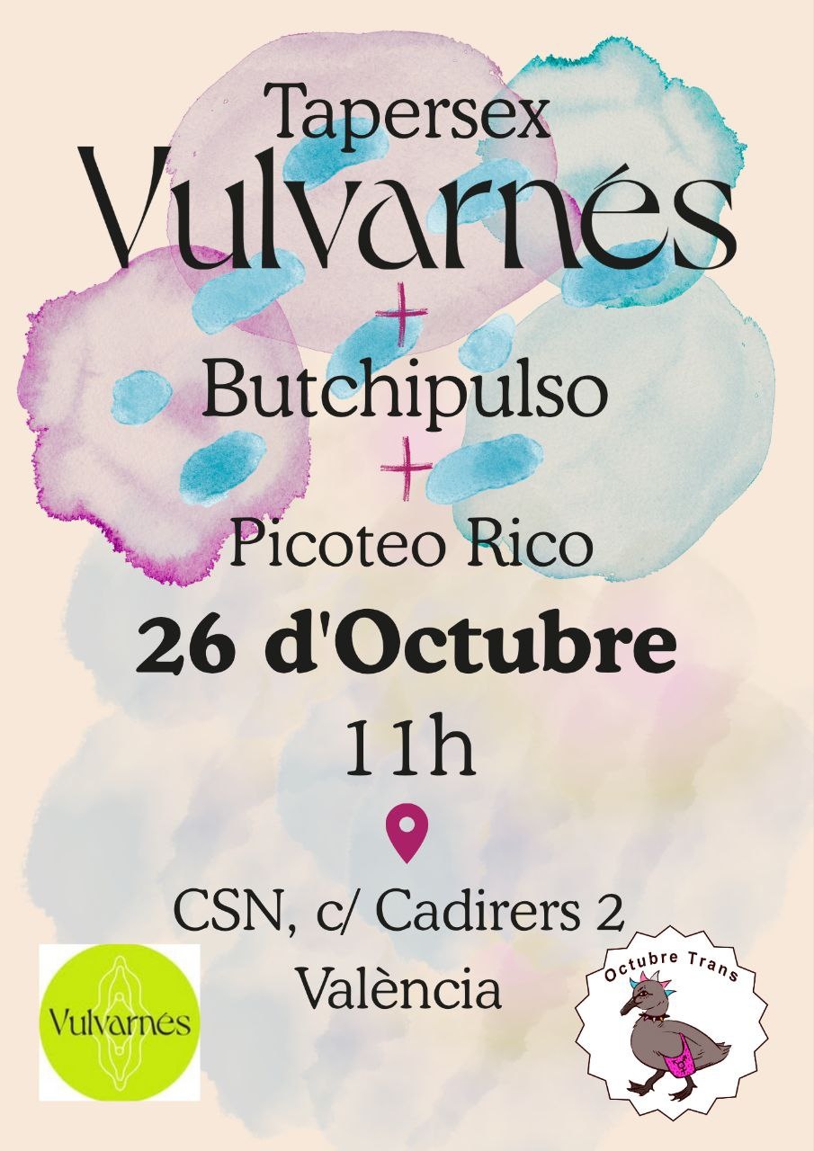 Este domingo por la mañana tenemos cita doble con Tuppersex de Vulvarnés y Butchipulso, será en el CSOA CSN (C/Cadirers 2)✨