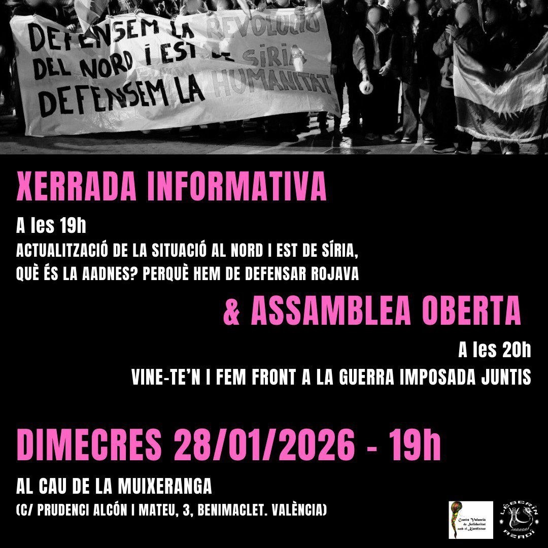 Es considera fonamental impulsar accions de desobediència, massives i visibles, per a pressionar als governs a trencar la seua aliança amb els gihadistes. També us demanem ajuda per a parlar de Rojava en tots els espais possibles i sumar a més persones a les mobilitzacions, mantenint viva la resistència.