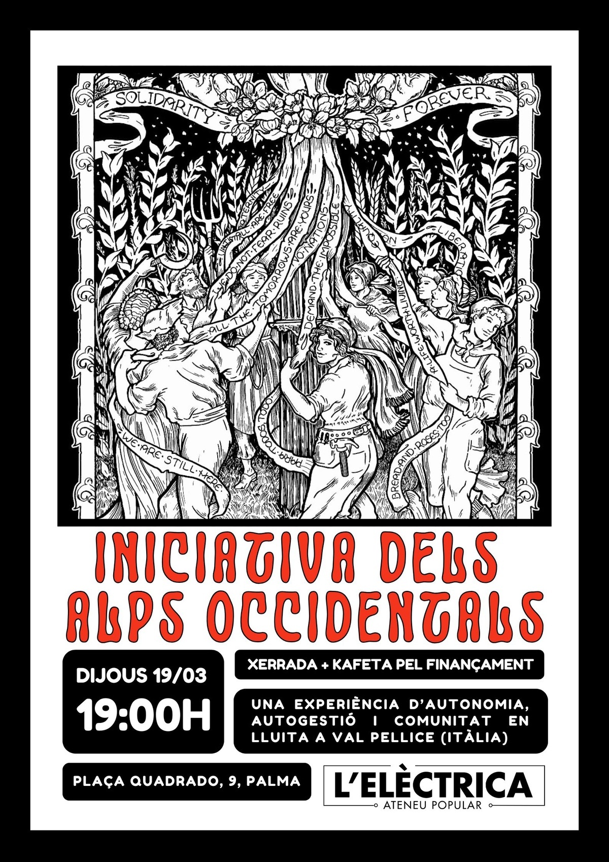 L'acte consistirà en una primera part a on les companyes del projecte ens compartiran les seves experiències i anàlisi tot seguit d'una kafeta els beneficis de la qual aniran destinats a finançar les lluites en defensa del territori de Mallorca.